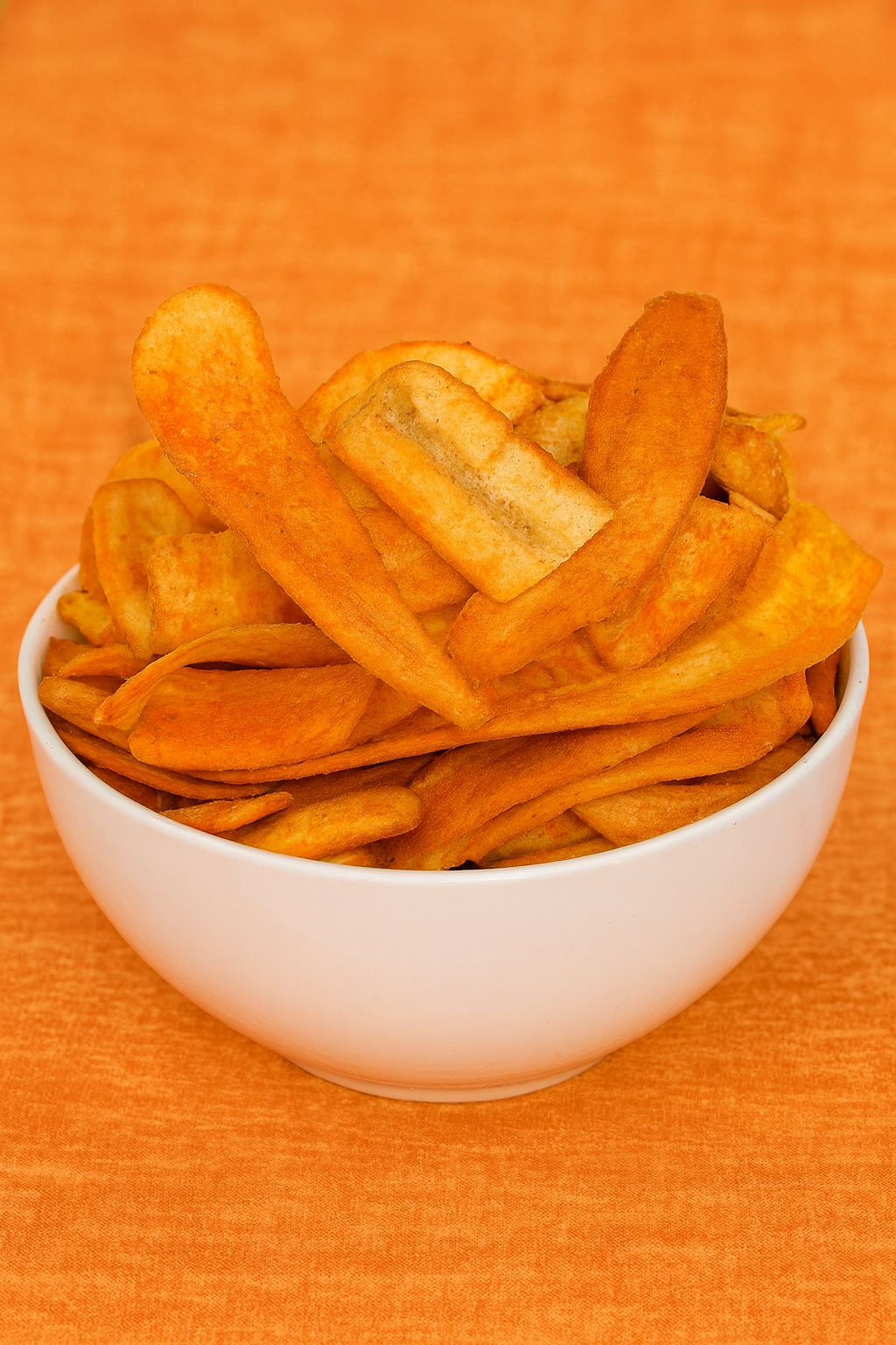 Crispy Masala Banana Wafer – thinly sliced banana chips, fried to perfection and coated with a spicy masala blend for a tangy, crunchy treat.