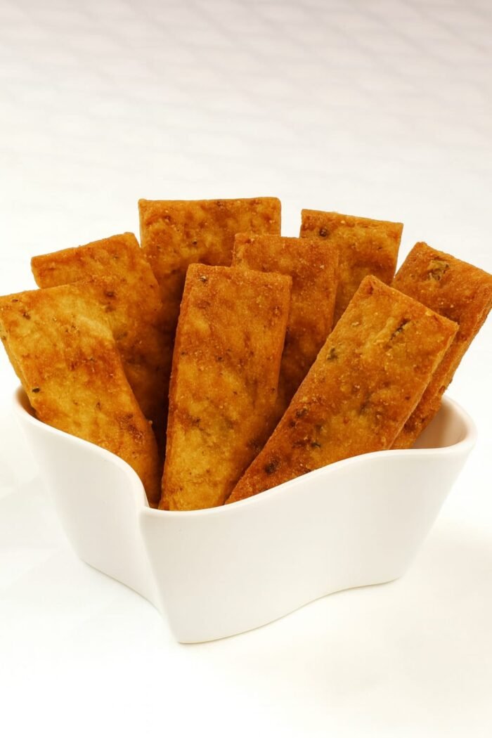 Our Masala Stick is a crunchy and flavorful snack prepared from refined flour (maida) and fried in edible oil for the perfect crispiness. Lightly flavored with jeera (cumin) and a hint of kasturi methi, each stick carries a subtle aromatic taste. To enhance the flavor, it is sprinkled with chaat masala and red chilli powder, giving it a tangy and spicy finish.