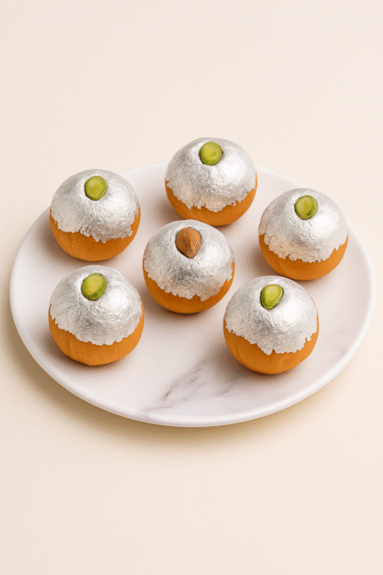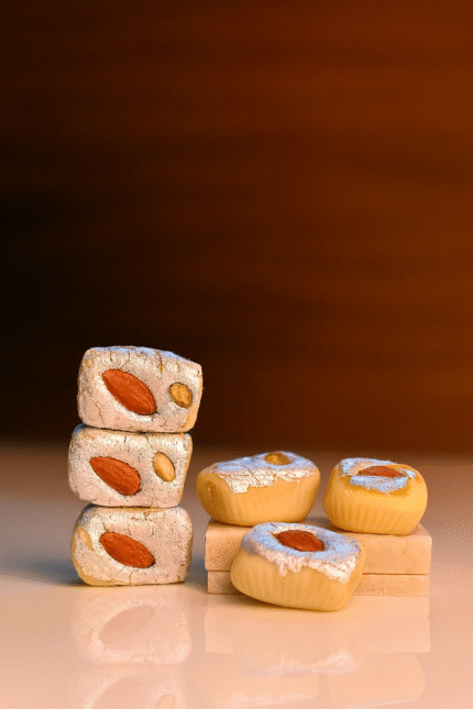 With its creamy milk base, indulgent butterscotch center, and nutty almond topping, Butterscotch Sweet offers a perfect balance of traditional sweetness and modern flavor. Ideal for festive gifting, family celebrations, or simply enjoying a special treat, this mithai is sure to win everyone’s heart.