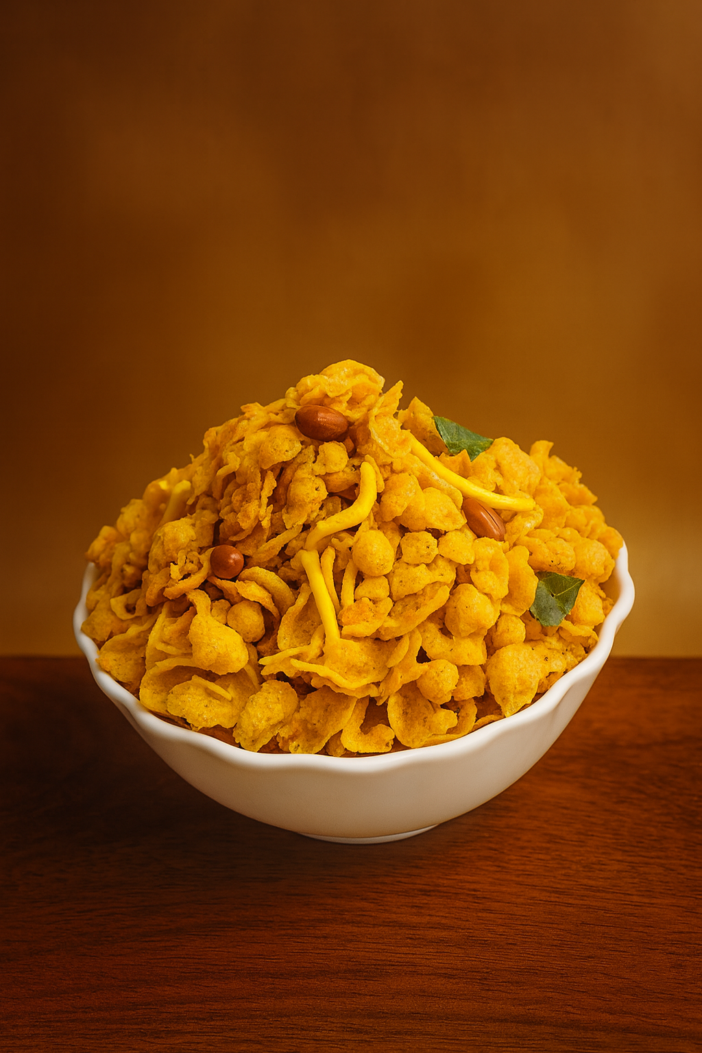 Farali Chevdo – A crispy, vrat-friendly snack blend of potato flakes, dry fruits, and mild spices. Perfectly light and flavorful for fasting or anytime munching.