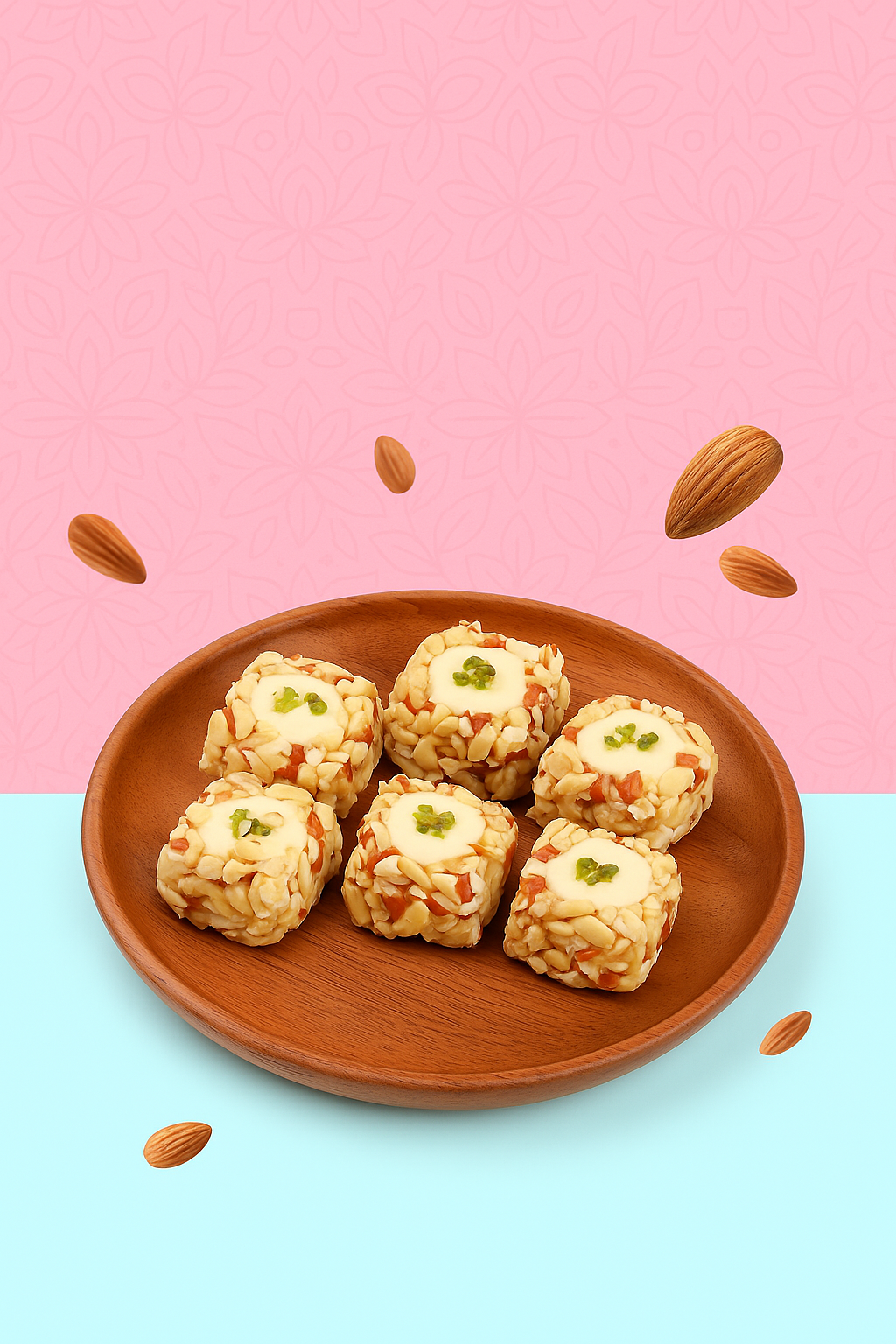 SEO Keywords: Sindoor Delight, kaju sweet, white chocolate mithai, almond cashew sweet, pista topping sweet, best-selling fusion sweet.