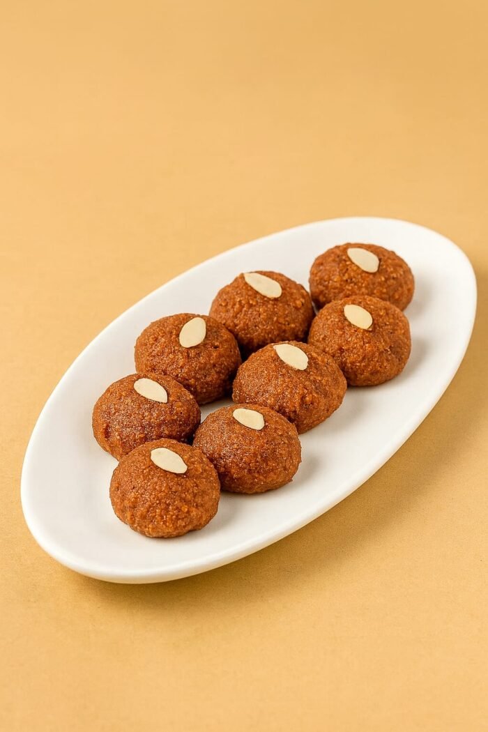A rich and traditional Indian sweet, Thabdi Penda is a timeless delicacy made from slow-cooked buffalo milk, pure ghee, and natural jaggery. Its grainy texture and caramel-like flavor come from the meticulous process of simmering and stirring until the mixture thickens and deepens in color. Finished with a hint of cardamom and garnished with pistachios or almonds, Thabdi Penda melts in your mouth while offering a nostalgic taste of Gujarat’s sweet heritage.